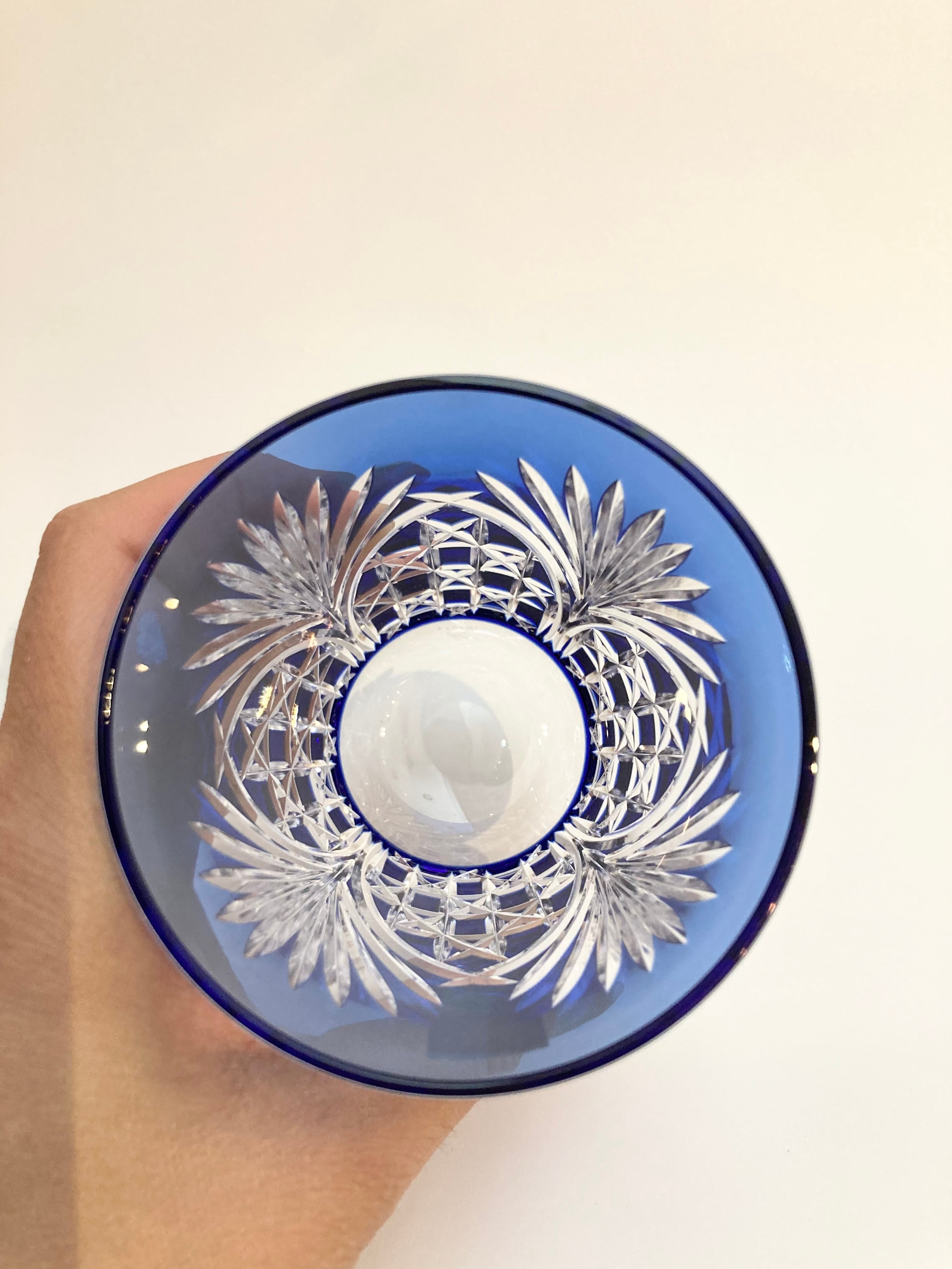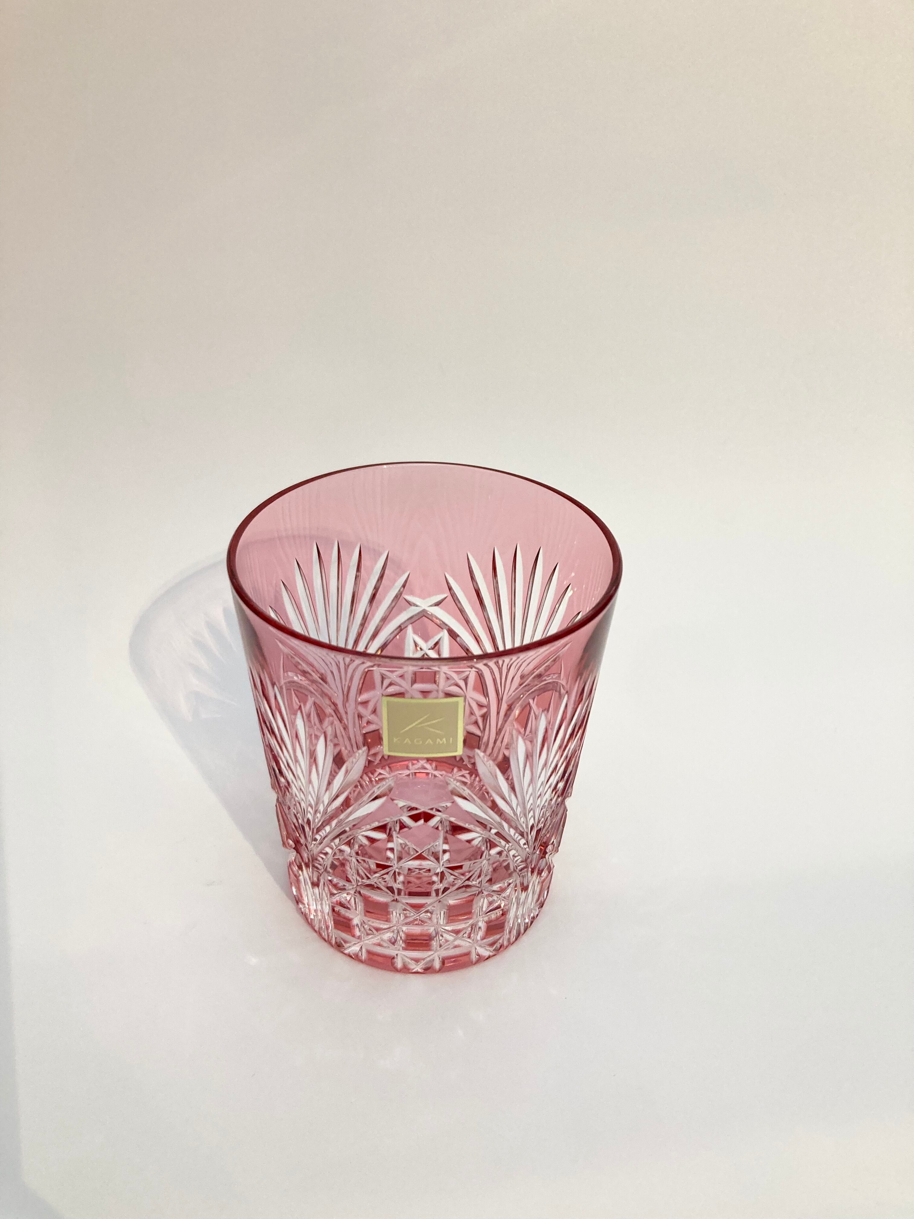 【カガミクリスタル】江戸切子 ペアロックグラス<笹っ葉に四角龍目紋>